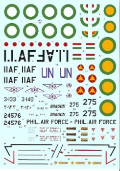 This sheet contains markings for 4 colorful aircraft never previously covered in decal form: - F-86F Sabre, Imperial Iranian AF in NMF finish & United Nations markings,